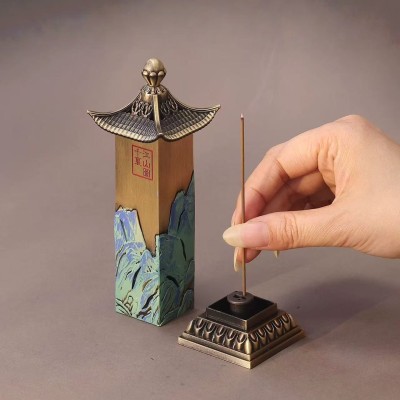 YiYuan Handmade Incense Burner Chinese Aesthetic Creative "A Thousand Miles of Rivers and Mountains" Standing Incense Burner