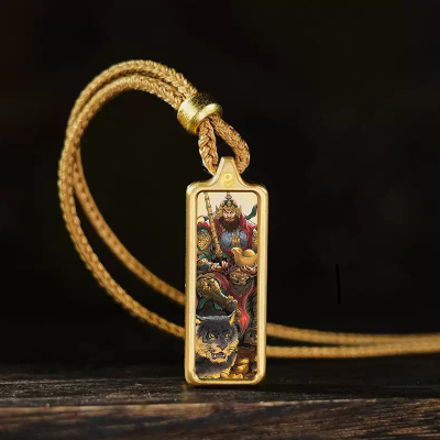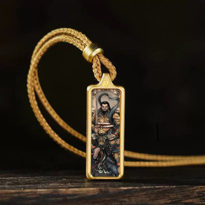 A Taoist deity, "The Great Emperor of the Three Realms, the God of Power and Power, the Heavenly Lord Guan Yu" titanium steel enamel alloy amulet pendant