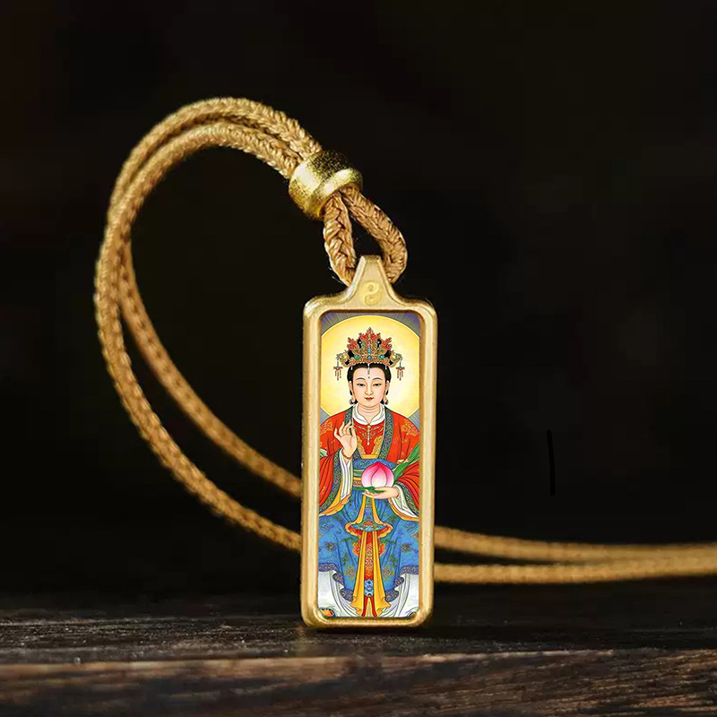 This pendant, depicting a deity, is handcrafted by Taoist artisans. Its titanium-steel enamel case is carved from an alloy and coated with durable enamel, ensuring its color lasts for years (note: the color may oxidize naturally).