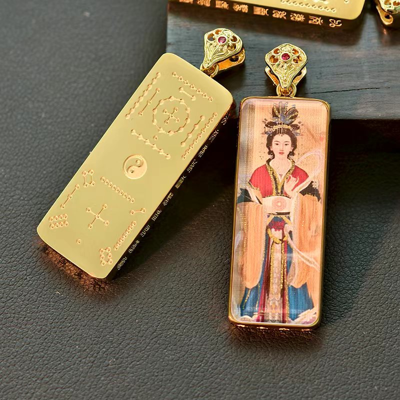 This amulet-style pendant is handcrafted by Taoist artisans. The enamel shell is carved from an alloy and coated with durable enamel, ensuring its color lasts for years (note: the color may oxidize naturally).