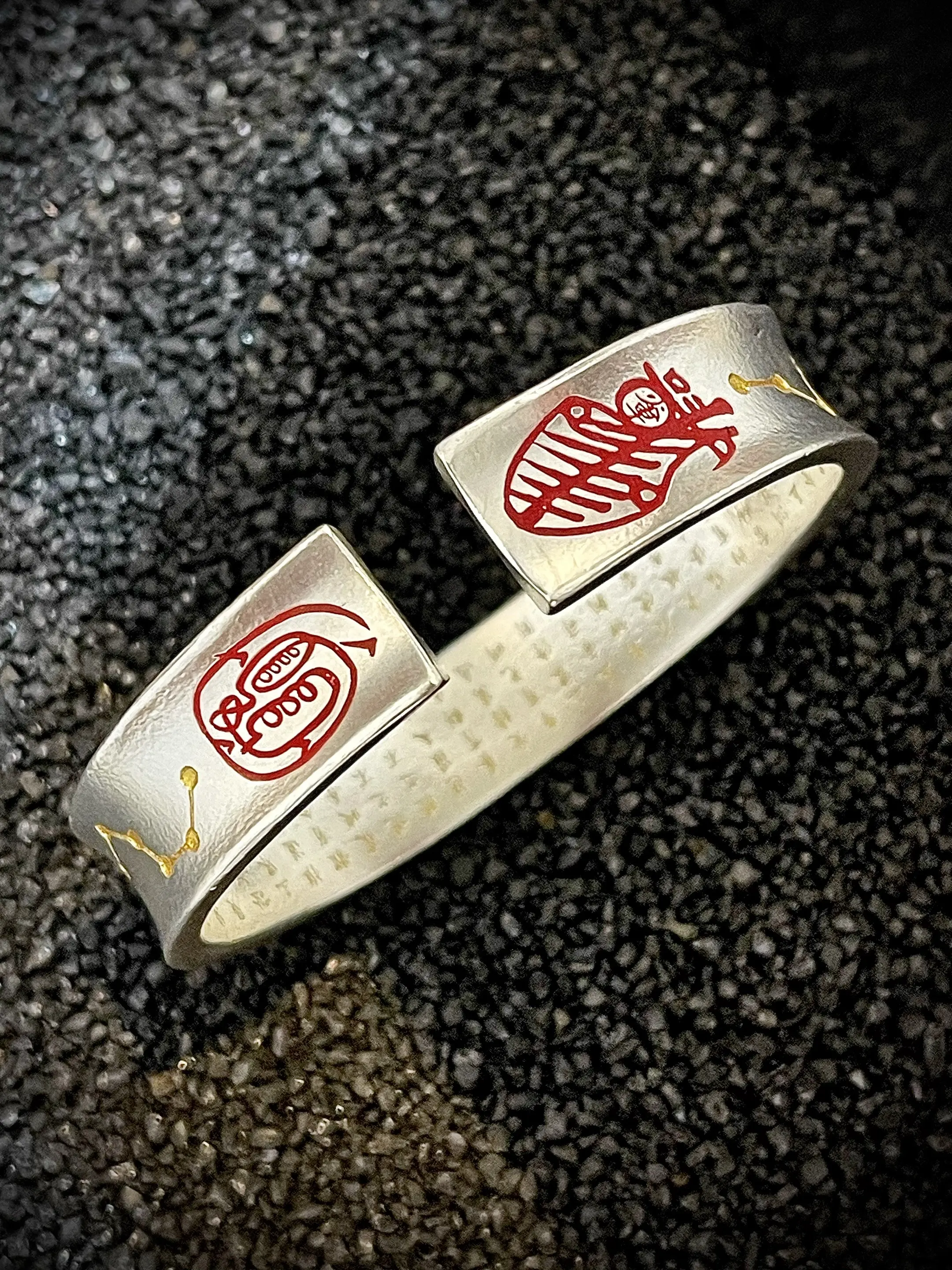 Crafted from a titanium steel alloy, the bracelet is meticulously hand-carved by Taoist artisans with Taoist inscriptions and auspicious symbols, such as the Tai Shang Protective Mantra and the Big Dipper. Every stroke is imbued with sincere Taoist devotion, like a magical talisman engraved on the body, offering constant protection, warding off evil, and calming the mind.